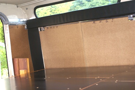 L'opacité des vitres est réalisé avec de l'isorel dur récupéré en supermarché pour les embalages. |